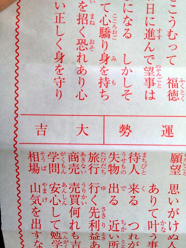 タマに良くて中吉・吉、ほとんど小吉か末吉。