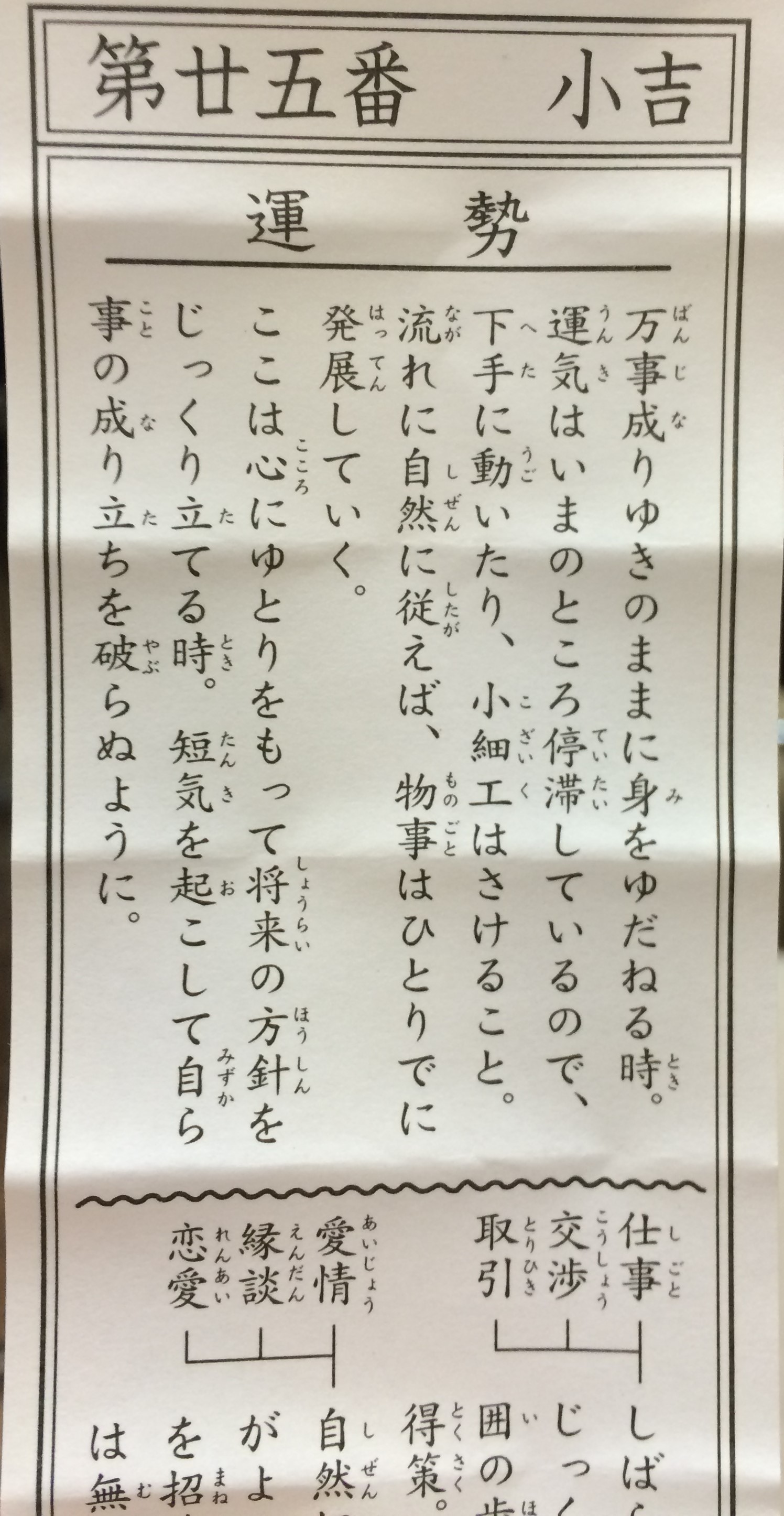 恒例の御神籤は「小吉」。