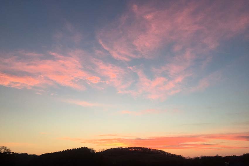 ふと見上げると美しい夕焼けが。