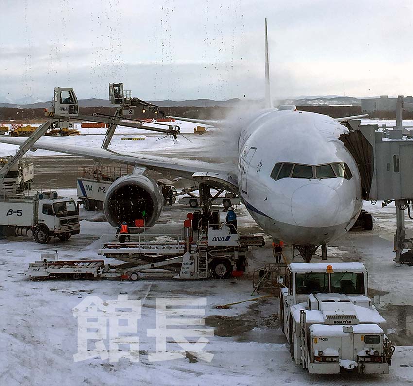 機体に積もった雪を落としております。(笑)