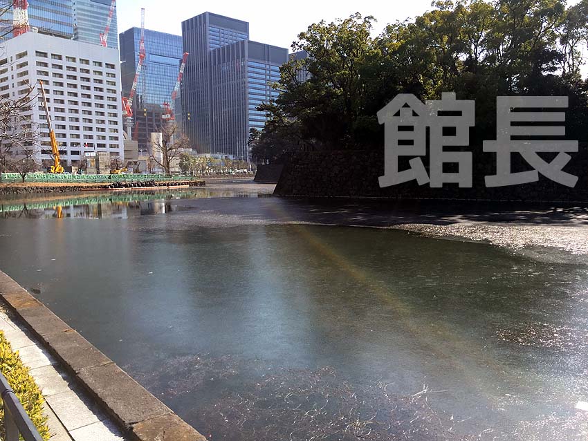 で、次は凍った皇居のお堀!