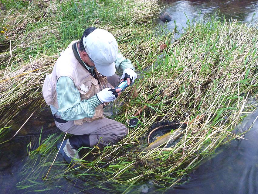 水量は多いものの魚影もライズもあるゾ。(喜)