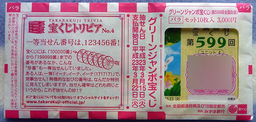 緑巨大宝籤購入だ。
