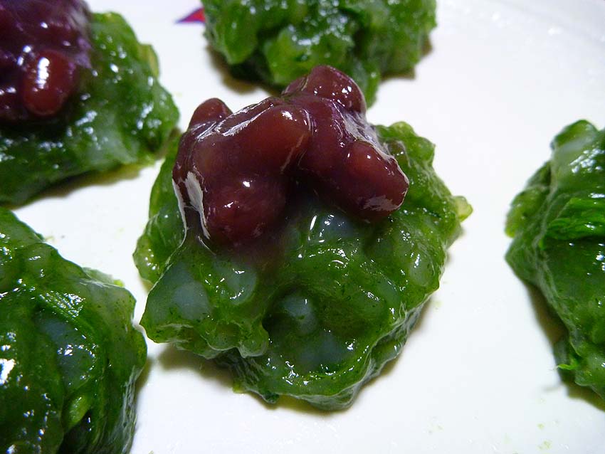 茹でて擂り潰して団子にする所謂蓬餅。